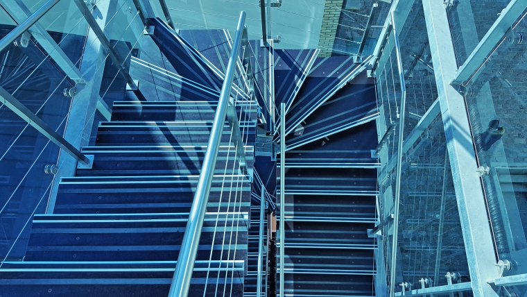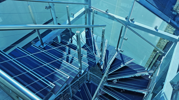 3 FotoPulētas nerūsējošā tērauda margas kāpņu telpā.
